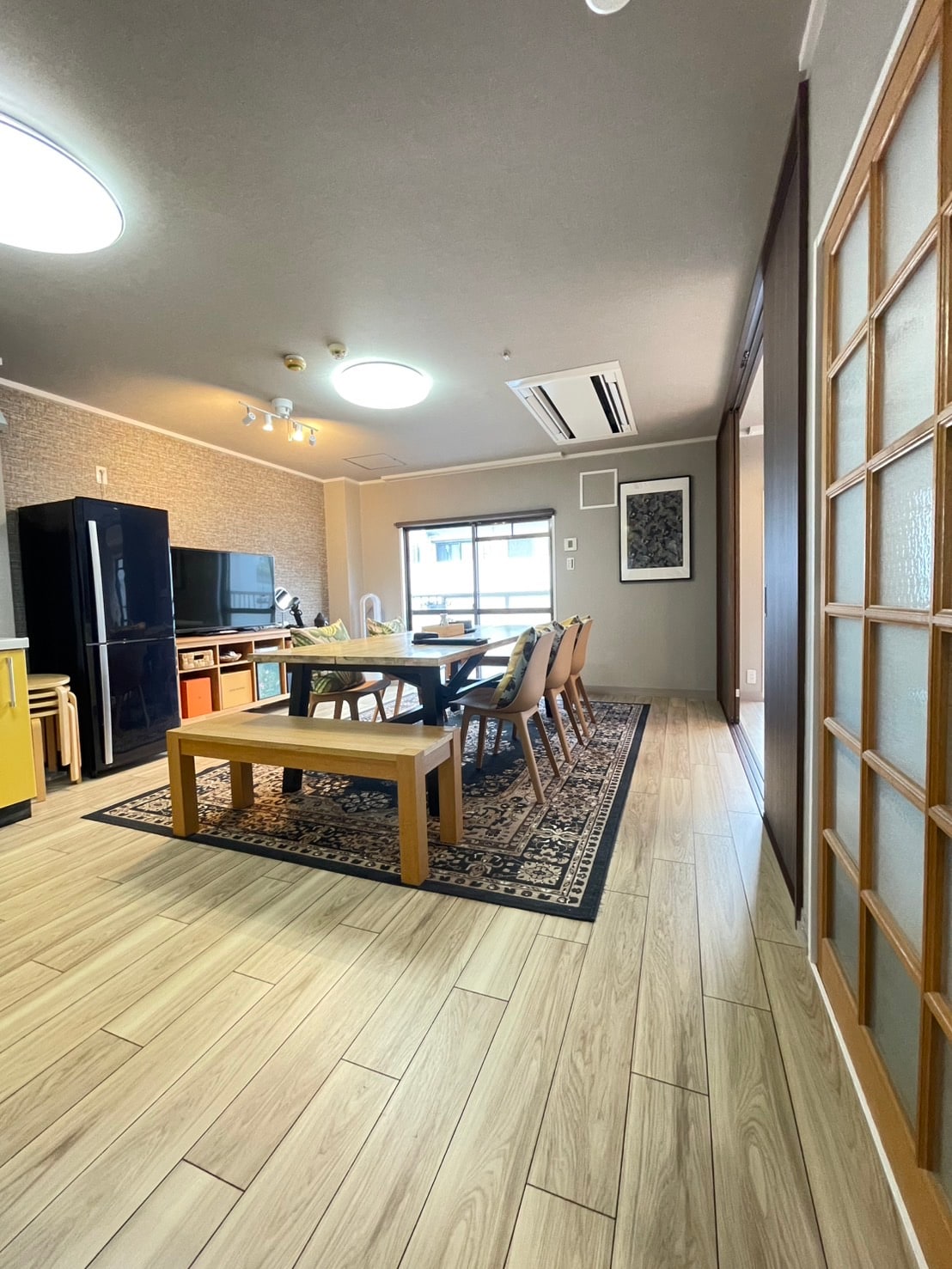 E1京都四條河原町地點非常好128m2的3+1房有電梯,餐桌可坐10人一起快樂用餐聚餐