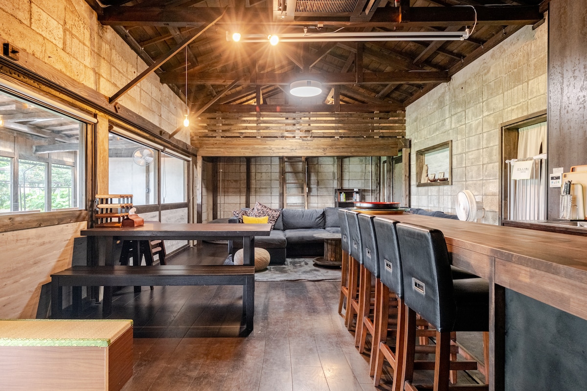 築70年の納屋をセルフリノベーションしたゲストハウスです。 建物を支える梁等はそのままに、しかし快適にお過ごしいただけるよう、断熱性気密性は高いお部屋に改修しました。 セルフリノベーションに興味のある方・古いものに触れたい方もお楽しみいただけます。 また、お子様も喜ぶロフト付き♪ロフトの窓から見える景色では、朝は朝もやがかかり、幻想的です。 近隣には、藤公園・和気神社(徒歩圏内)、閑谷学校など歴史や季節を感じられるスポットがあります。 また和気富士などの登山や、片鉄ロマン街道サイクリングロードなどからも近いため、アクティビティを楽しみつつご宿泊いただくこともおすすめです。 和気ICからも近く、ここを拠点に岡山の各地へアクセスすることも可能です。 山や川に囲まれ、ほっとできる空間で、お寛ぎください。