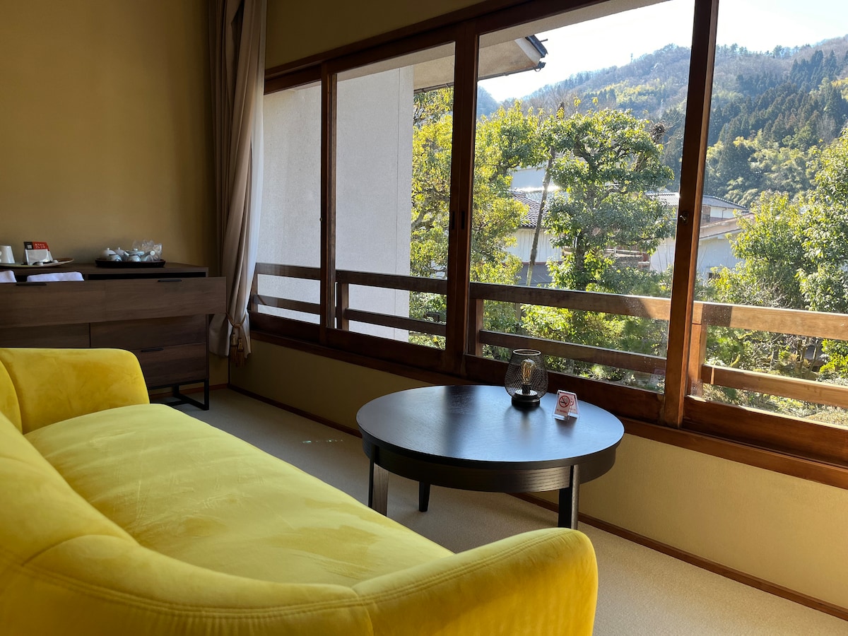 One large tatami room (about 18 square meter, big enough to sleep 6 people) in a traditional hot spring (onsen) inn for rent. The inn has only 6 rooms. The hot spring inn has 4 hot spring (onsen) pools ( 2 outdoors and 2 indoors). We welcome foreigners with tattoo. Free parking spaces for up to 10 cars.