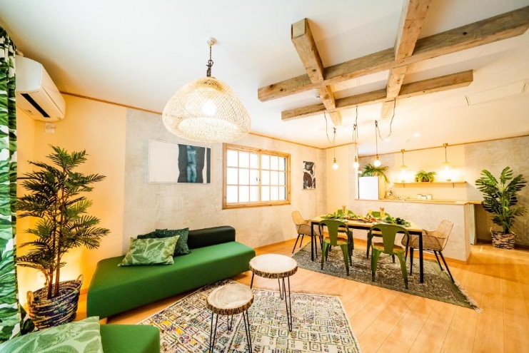 2022年8月新开业的三层豪华独栋别墅。室内装有电梯,并拥有126㎡的宽敞空间,标准可容纳10名成人。 日本战国时代,参拜了住吉大社的丰臣秀吉在此停留,随行的千利休为他取泉水煎茶,秀吉发现泉水清冽,妙不可言,对此赞不绝口。于是便有了殿下的“殿下茶屋”,天下人的“天下茶屋”之类的地名。如今,我们秉承日本“茶道”文化,用心打造了以“茶道”为主题的日式高档旅馆,亦与“天下茶屋”的地名相得益彰。 您可以通过“茶道”的室内设计,加深对日本茶道“和”,“静”,“清”,“寂”的理解,还可以在“信乐烧”的陶器浴缸中品味日本清酒,赏日式庭院,度过休闲而奢华的时光。 同时,我们配备有110英寸的超大投影设备,及任天堂的“Nintendo Switch”游戏机等娱乐设施,非常适合家庭或团体入住。 此外,交通很便利,往返机场和大阪主要景点非常方便。 可以从“关西国际机场”坐电车直达到酒店,还可以从酒店坐电车直达到“通天阁&新世界”,“难波”,“梅田”等大阪主要地区,都不需换乘。 请作为大阪观光的据点使用。