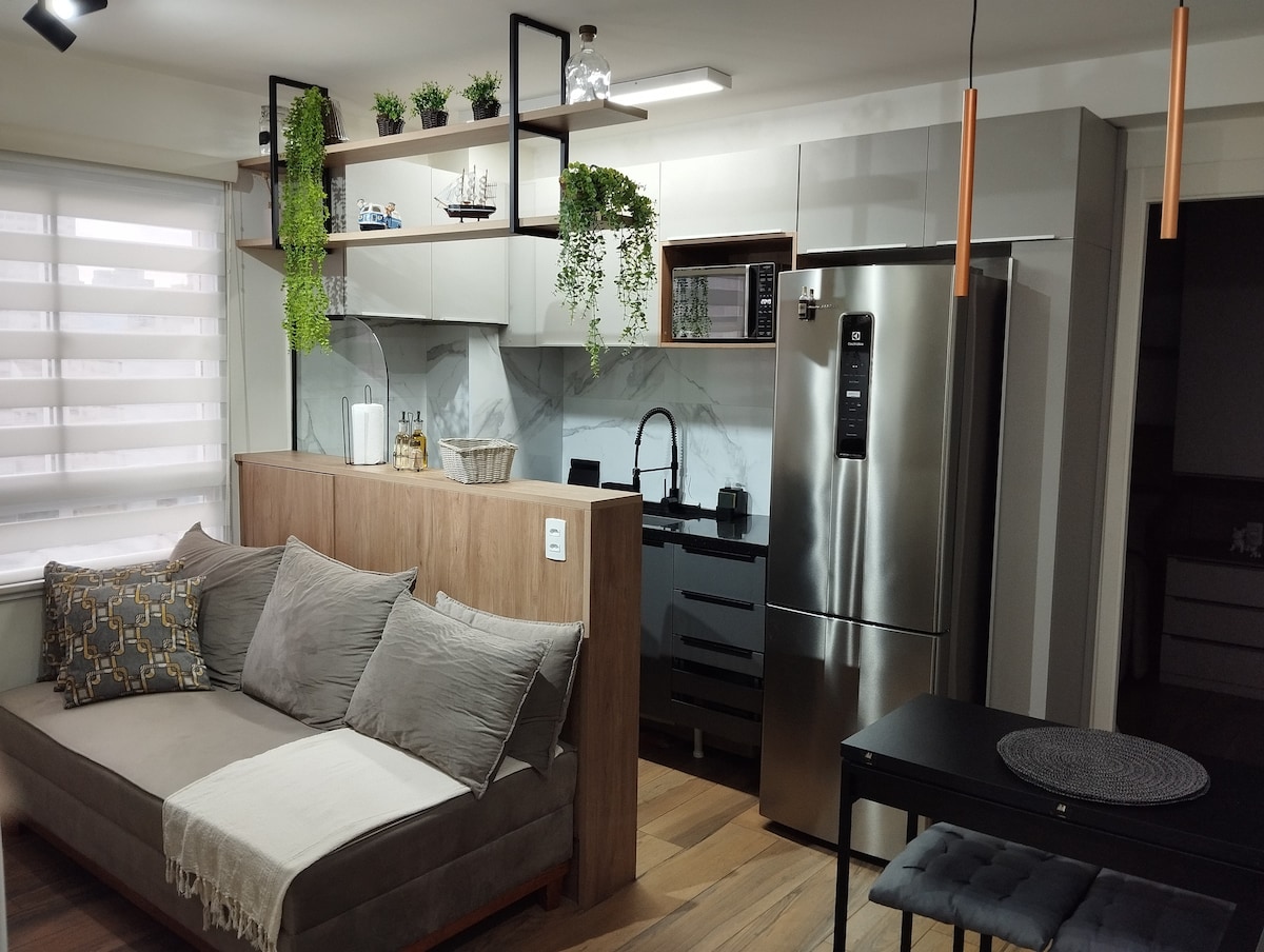 Experience One Eleven in Vila Olimpia. This modern apartment features large windows with breathtaking city views and natural light. The unit boasts 600 Mbps internet and a 4K HD TV. For total comfort, it has a Hot/Cold AC system: 27,000 BTU/h unit in the living room and 10,000 BTU/h in the bedroom. The bedroom is quiet and dark for a restful sleep. Impeccably maintained, you’ll be walking distance to top restaurants and business hubs—a safe, upscale retreat with a stunning urban backdrop.
