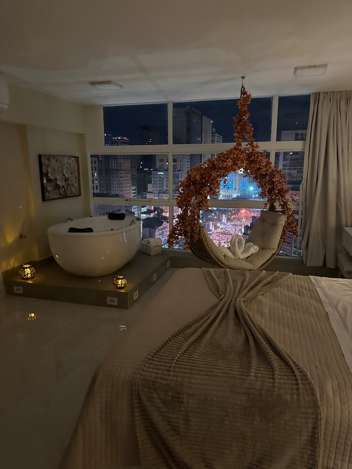 O Vista do Mirante é um Studio cheio de charme e conforto para casais desfrutarem de uma experiencia única. Conta com uma localização incrível no Centro Histórico de SP, dentro do Edifício que tem um dos mais importantes cartões postais de SP que é o Sampa Sky. Com vista de tirar o fôlego por estar no 27º andar e bem de frente para o Vale do Anhangabaú. Você fará belas fotos pois o espaço conta com decoração romântica, lindo balaço decorado, banheira c/Hidro e cromoterapia