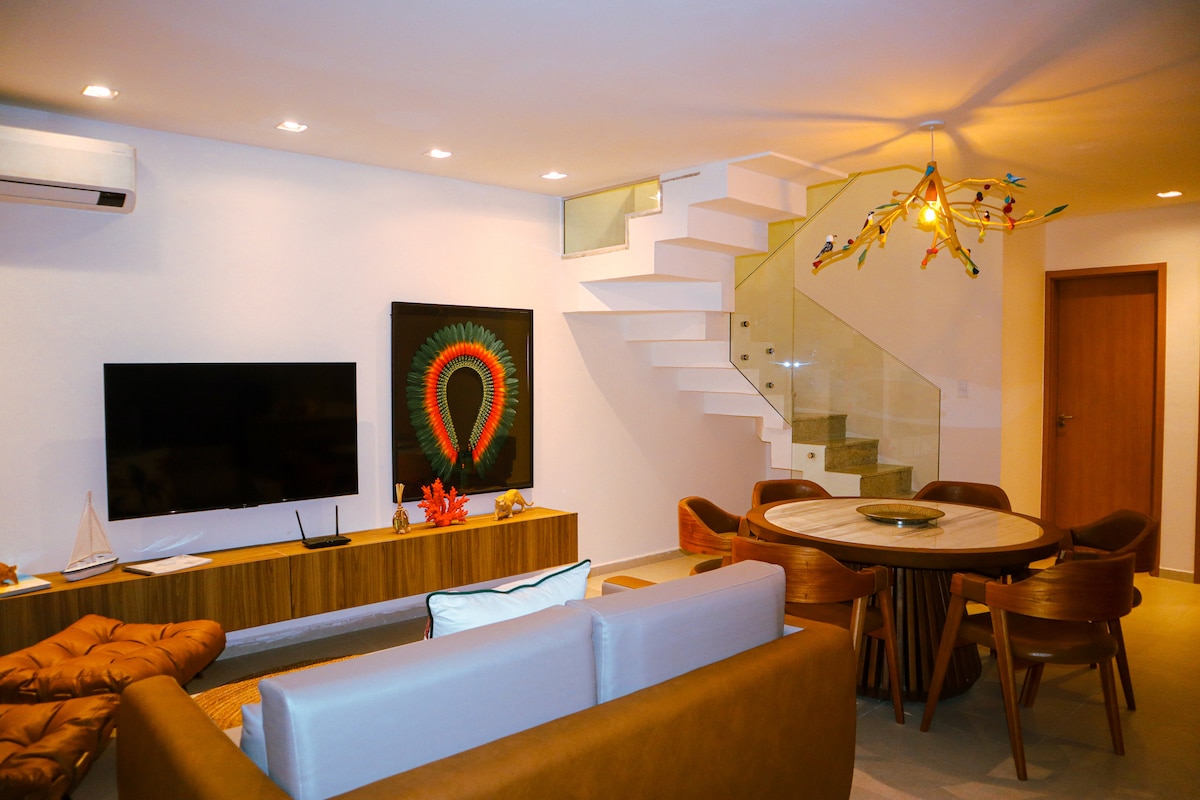 Casa Caroá is a beautiful and modern house right on the sand. The house has three spacious individual chalets behind the main house. The chalets are spacious suites with air conditioning, minibar, king beds, TV and outdoor shower. Guests can also use the shared beachfront pool. Casa Caroá has a small shared kitchen, which guests can use to heat and consume simple foods, dishes brought from restaurants and drinks. Note: the small kitchen is not a full kitchen and does not have a barbecue grill.