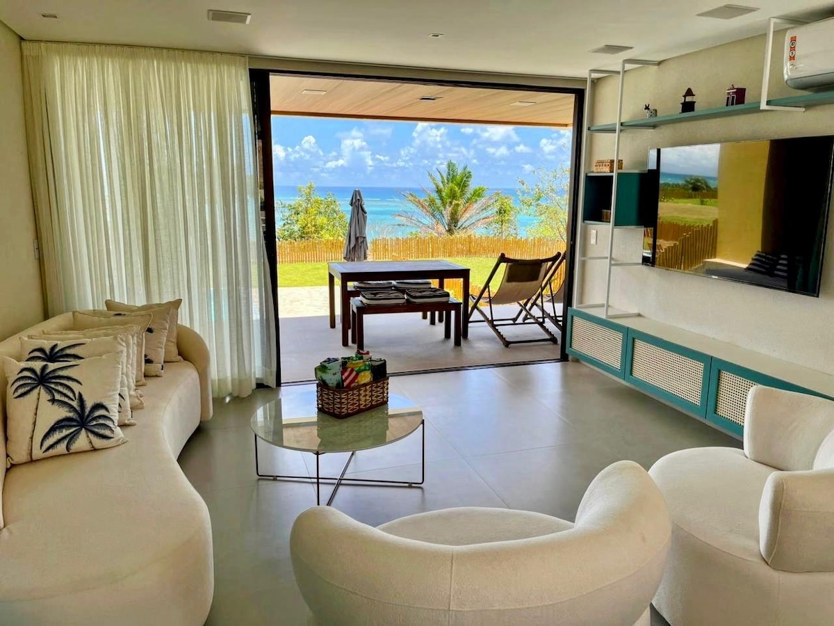 Casa Koral Milagres - New beach house with 3 bedrooms in closed condominium. Front row beach view and direct access to Praia Marceneiro. Private pool and garden. The house is located in Sao Miguel dos Milagres. The house faces the sea with unobstructed view/access to the beach. From the living room you can walk into the backyard with a pool and sand and sea in front of you - 3 bedrooms and 3 full bathrooms (2 being connected) - Queen bed in each bedroom and 4 pullout beds = Beds for 10 people