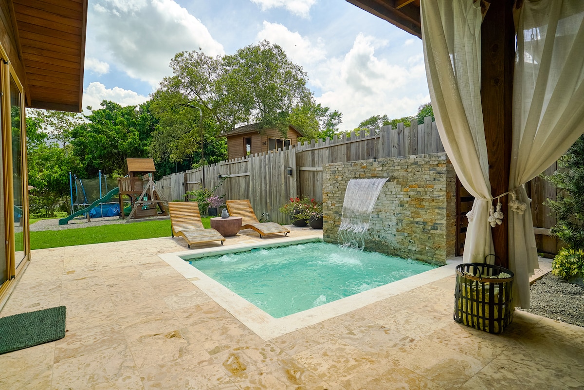 DISCOVER THE PERFECT MOUNTAIN RETREAT FOR FAMILIES AND GROUPS AT OUR SPACIOUS HOME. - Breathtaking Views - Private Gazebo with BBQ and Heated Pool - No 4x4 Vehicles Needed - Pet Friendly - High Speed WIFI - Indoor Fireplace - Fully Equipped Kitchen - Scenic Dining Room - Parking Space for 4 cars - 50" HD TV with Netflix, Youtube, etc. - Location is ideal for practicing hiking and mountain biking, you can get around safely within Jarabacoa.