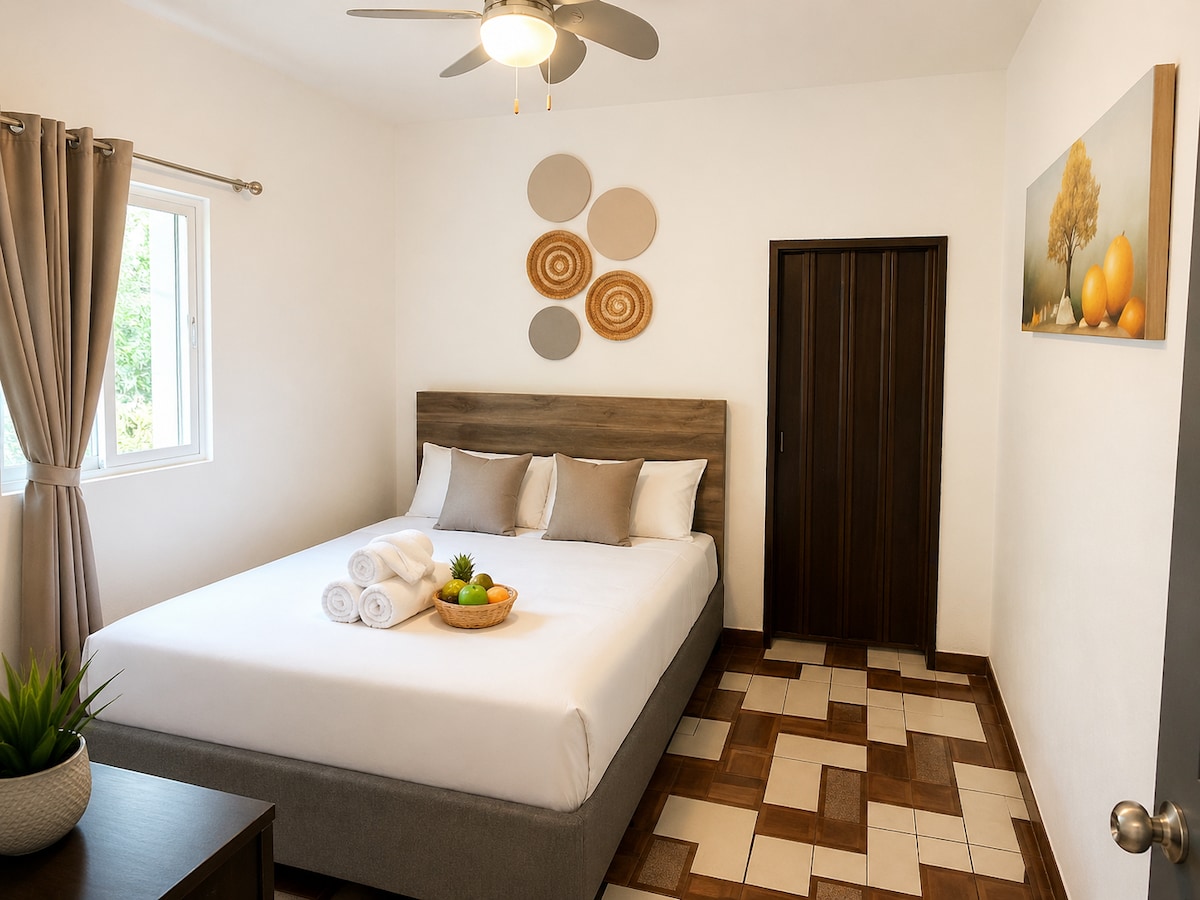 Esta habitación está dentro de nuestra propiedad, pero con amplia zona verde que la hace independiente; equipada con todo lo necesario para descansar, cuenta con área de jardín, opcionalmente podemos brindarle servicio de restaurante a la habitación, también podemos ayudarle si necesita servicio de transporte al aeropuerto, o para conocer los lugares turísticos de Jarabacoa.