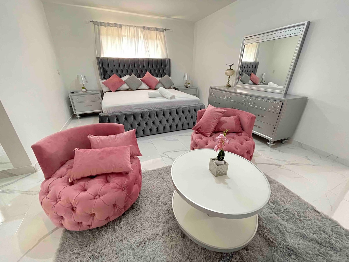 Very spacious apartment located in a modern luxury building in a safe area. Only 10 minutes’ walk to the center of Jarabacoa and bus terminal of Caribe Tours. Fully equipped kitchen. 3 double bedrooms + 2 complete bathrooms + 1 single WC+ Giant living room & kitchen. Luxury details in a unique style decoration. The apartment is in the 3rd floor with a nice view to a private park with old tropical trees. There are also nice restaurants nearby. AC are in three bedrooms.