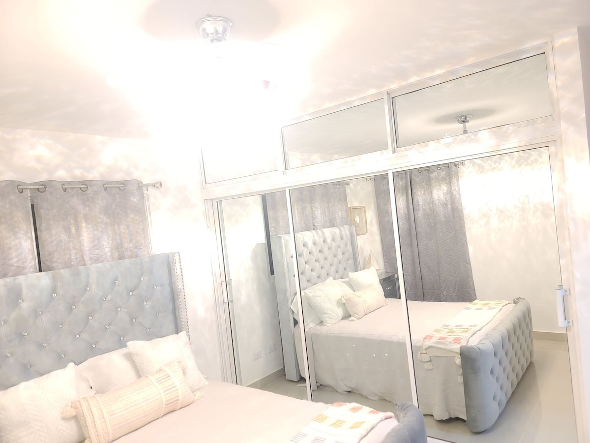 Relájate en este espacio tan tranquilo y elegante. Disfruta de acceso a las aguas del Río Yaque del Norte, podrás escuchar el relajante sonido de su cauce y una vista panorámica a las montañas del municipio de la eterna primavera Jarabacoa, tanto por la parte delantera del alojamiento como por la parte trasera con vista al río desde sus habitaciones. Espacioso y acogedor apartamento con todas las comodidades y espacios para suplir tus necesidades.