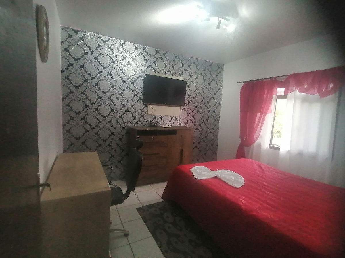 Suíte com varandão e chuveiro, com vista para magnífica área verde de mata Atlântica e também vista para a cidade. Casa localizada no final de rua sem saída, em ambiente bucólico e acolhedor. Próximo à Universidade Católica, e perto do acesso para a Rota das Cachoeiras de Corupá. 2km da Arena Jaraguá.