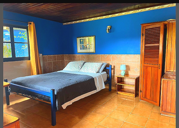 Just a 10 minute walk to downtown Boquete this modern & contemporary furnished room for max 4 people is located on the second floor in an extraordinary tastfully furnished mansion. The beautiful terrace with a natural waterfountain is surrounded by gorgeous green areas inside a birdparadise. Stylish room (2 Queen-Size/Orthopedic mattress) with private bathroom & walkin closet. Huge lobby with different sitting areas. Big shared kitchen, dining area, free parking, fast Wifi, cable TV, Netflix.