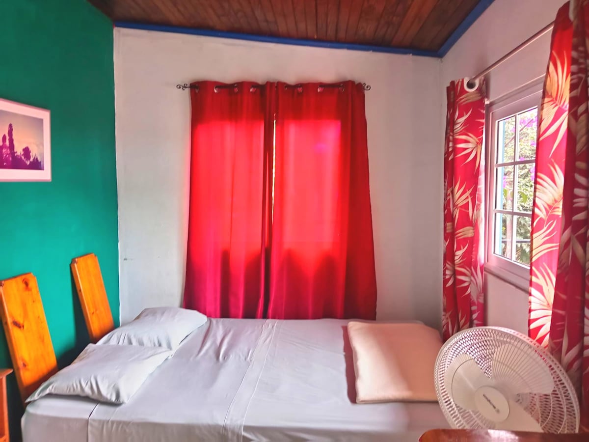 Beautiful private room with private balcony with view, on a quiet and green property with a creek flowing thru right in the center of Boquete. Public transport, shops, restaurants, bakeries, pharmacies, bank and supermarket all in walking distance. Boquete has an average temperature of 77 degrees fahrenheit during daytime, and 66 degrees fahrenheit during the night, therefor a/c is not needed.