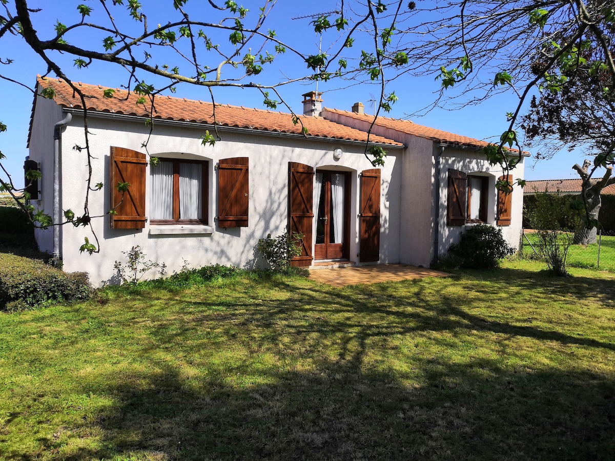 Maison ossature bois récente, 60 m2, décorée avec goût, classée 3 étoiles par l'Office du Tourisme de Vendée Séjour 40m2 plein sud avec cuisine US. Ch. 1 de 11m2 avec lit 160. Ch. 2 avec lit 80. SDB avec douche à l'italienne. Wifi. TV. Lave linge. Lave-vaisselle. Terrasse couverte très jolie vue sur forêt. Centre bourg 5min, plage 10min à pied. Calme.
