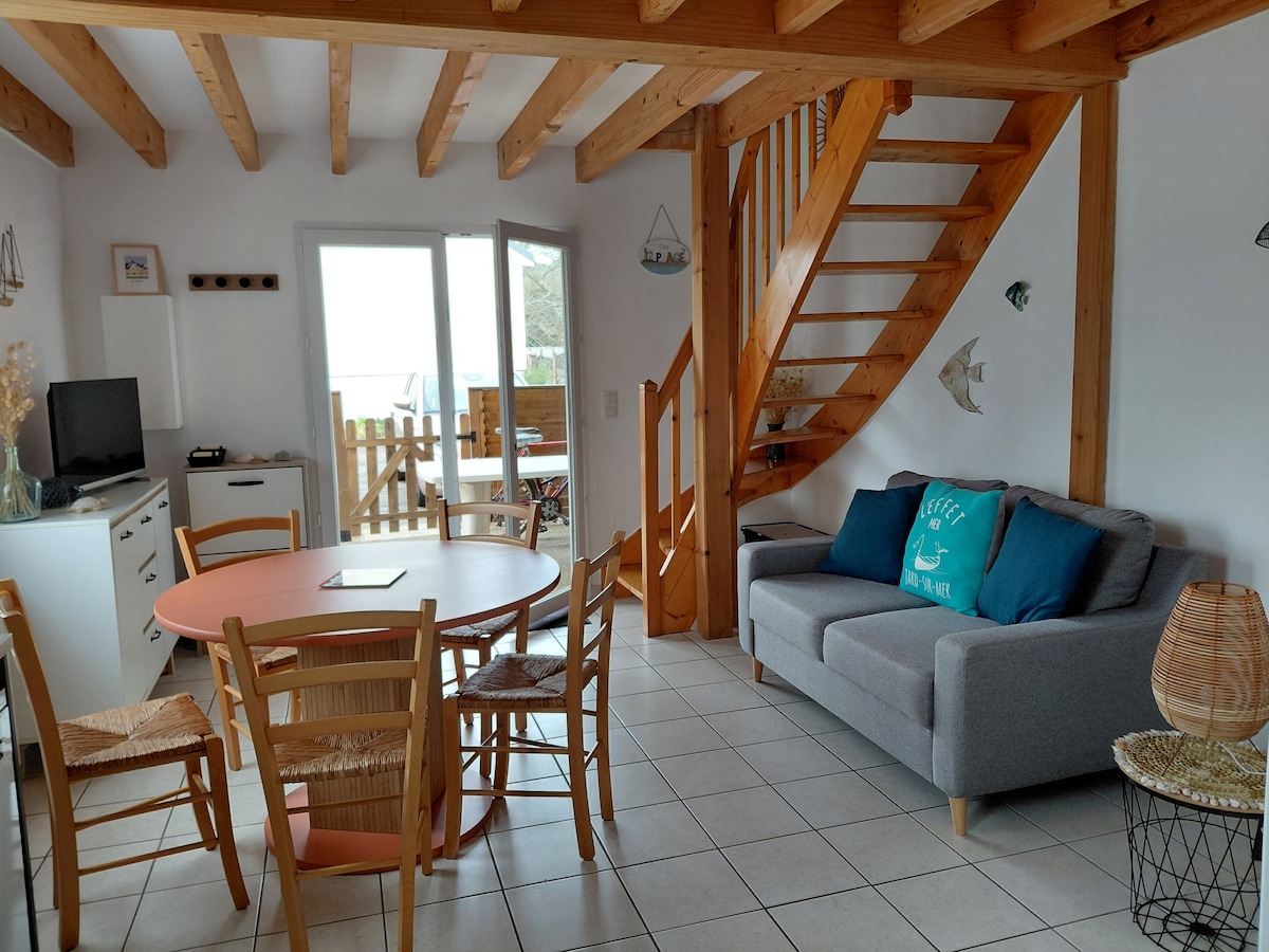 Ce logement paisible offre un séjour détente pour toute la famille ou entre amis. Charmante maisonette de 40m2 idéalement située à 50m de la plage surveillée de Boisvinet, accès à la plage par chemin piétonnier. A 10mn à pieds du port et des commerces Forêt domaniale à 100 mètres, idéal pour les amoureux de la nature et ballades côtières. Parking privé sécurisé Terrasse de 28 m2 entourée de haie avec salon de jardin Spot de planche à voile à proximité, et activités nautiques au port