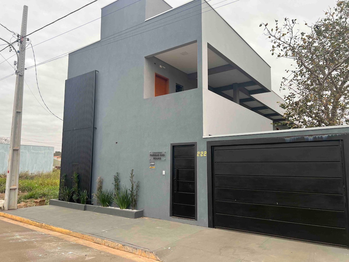 Newly-built house, in a close and safe condo, with shared yard and parking. Access is by electronic gate. Our house welcomes up to 6 guests and has a great location, only 5 blocks from city centre. Wi-fi available. It has all necessary amenities: Kitchen equipped with fridge, stove and oven, microwave and kitchen utensils; The living room has TV, table for 4 people, sofa and sleeper sofa; 1 bathroom; 2 bedroom with air conditioning and double beds; Washing machine;