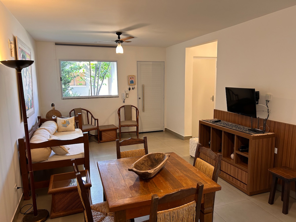 localizado a somente uma quadra da praça central, nosso flat conta com estacionamento privado para até dois carros, 2 suítes, um sofá-cama de solteiro, cozinha e sala integrada, varanda gourmet, ar condicionado nos quartos, tv, wifi e todos os utensílios que você necessitar . A decoração foi toda pensada para remeter a natureza e se sentir em sincronia com ela, mesmo depois que chegar dos passeios. Nosso intuito é fazer do nosso flat a sua casa em Bonito