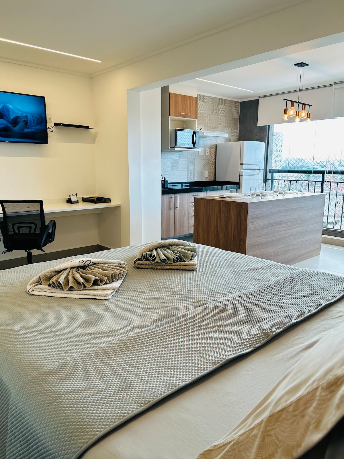 Studio de Design Único e de Luxo em um Condomínio Requintado Curta uma experiência elegante neste lugar muito bem-localizado: - Região central de Guarulhos; - A 7km Aeroporto de Guarulhos; - A 3 min da Rodovia Dutra; - A 5 min do Hospital São Luís; - A 5 min do Internacional Shopping; - A 10 min do Shopping Maia; - A 10km de São Paulo. Desfrute de um refúgio moderno, totalmente equipado e decorado com estilo. Este espaço incrível oferece uma experiência de hospedagem de alta qualidade.