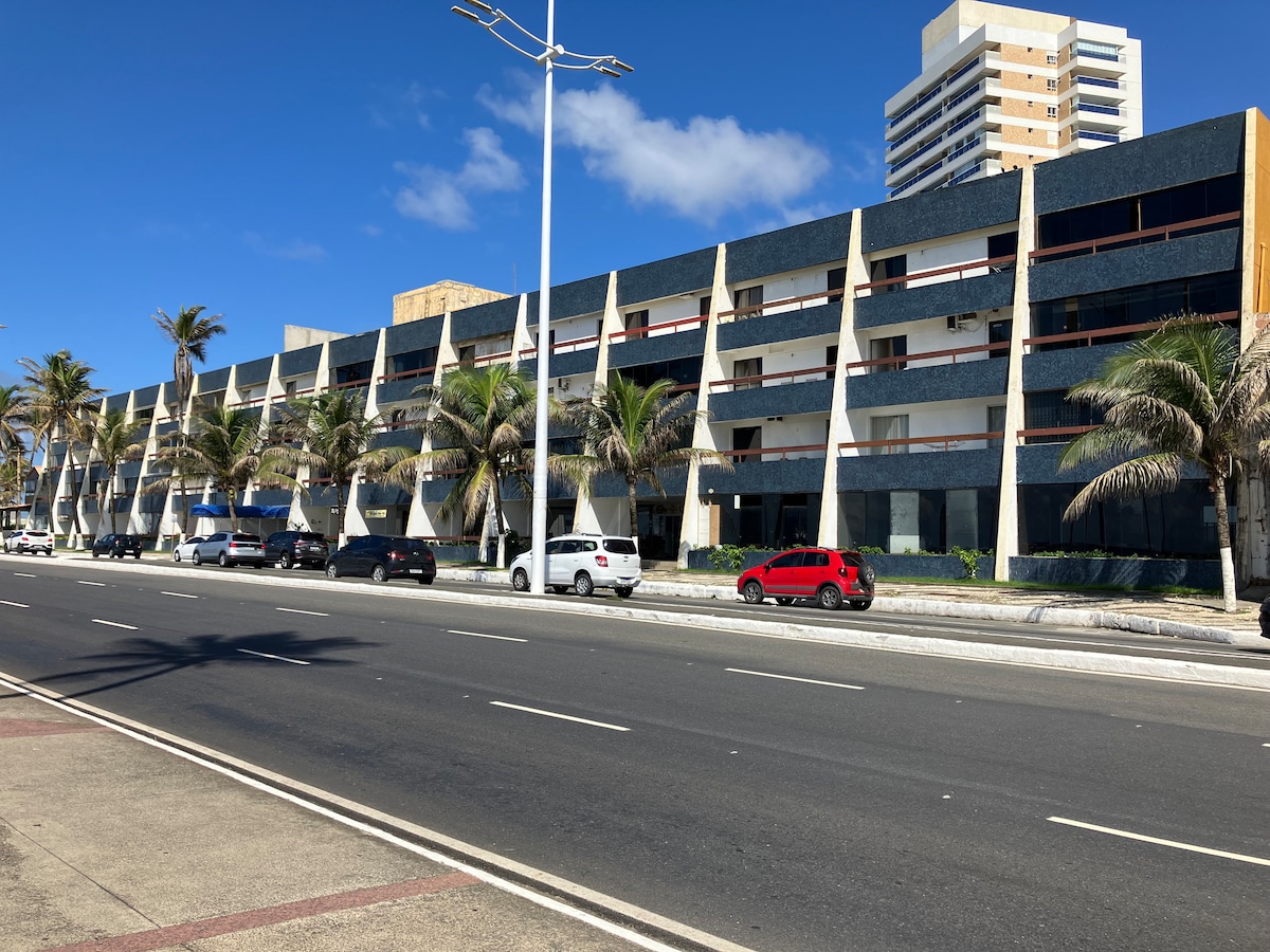 Relaxe ! Flat Silencioso! Aconchegante ! Climatizado! Som do mar canto dos pássaros ao nascer do sol! Vista Mar privilegiada! Estacionamento Privativo ! Flat recém reformado : - 2 banheiros, suíte com Ar - Cafeteira aifler microondas gril máquina lavar roupa ... - Sala c/ Ar TV Smart sofá cama mesa ... - Ar condicionado ventilador, internet de alta velocidade pra home office _Térreo do flat Restaurantes Padaria salão de beleza... - Bike Itaú ,divãs massagem quiosque orla frente flat !