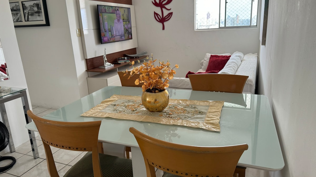 Apartamento com 3 quartos, 2 banheiros, sala, cozinha e área de serviço, muito bem ventilado e nascente. Dispomos de lençóis e toalhas de qualidade. Garagem privativa e segurança 24hs. No condomínio dispomos de parque infantil, quadra, churrasqueira e salão de festas completo (reserva antecipada). Localizado no bairro nobre da Torre, próximo ao Carrefour, Atacado dos Presentes, Shopping Plaza, parque da Jaqueira, restaurantes e bares, academias, igrejas.