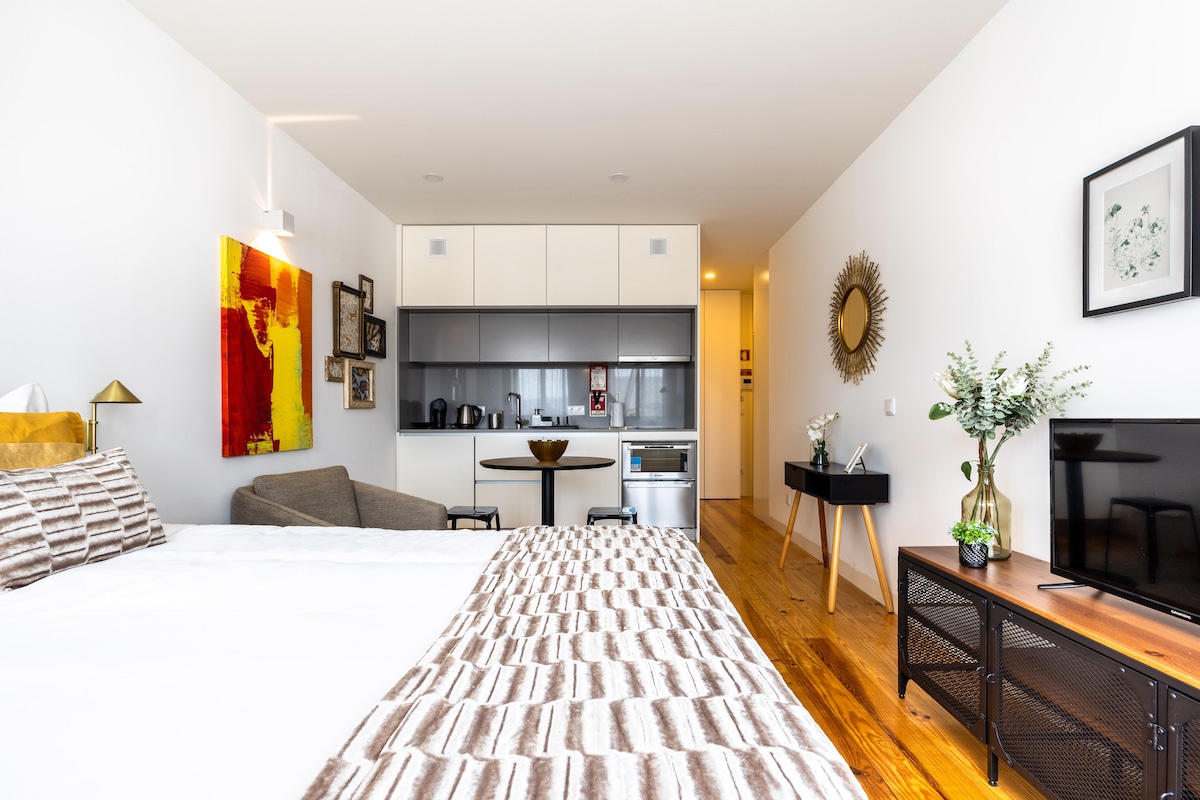 Enjoy an elegant experience in the city centre with this fully equipped Studio. Its superpowers are its comfort and quality and its strategic location 11min walking distance to S. Bento station and Porto Cathedral. Our team will tell you all the places you need to go. NEED TO KNOW: - Fibre internet connection, Wifi + Cable - 3rd floor, isolated from street noises and w/ a view - 5-star hotel-quality mattress (queen-size bed) - 24/7 support from a caring team of hosts