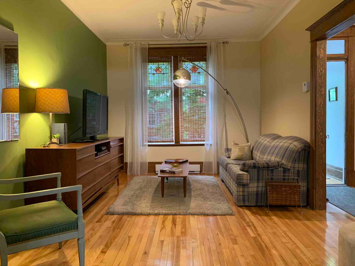 Metro: 7 min | Downtown: 22 min | Free street parking Welcome to Montreal Cityscapes, our urban retreat ideal for work, sightseeing, and family visits. This quiet apartment, designed for comfort, embraces a style that reflects the vibrant spirit of Montreal. As a seasoned traveler, I have curated this eco-friendly space to feel just like home. Whether you are here for work or leisure, welcome to your cozy and stylish haven in the heart of Montreal!