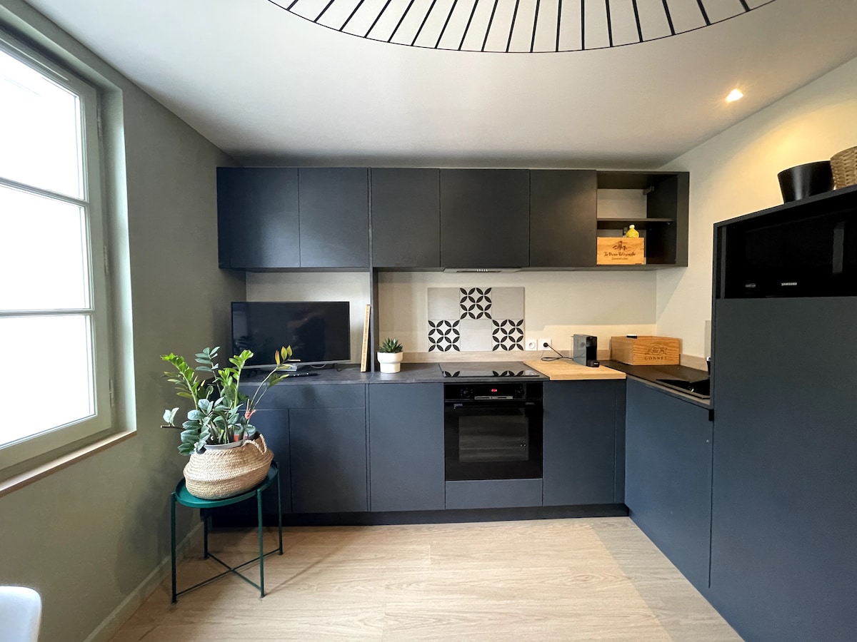 Magnifique appartement de 32m2 climatisé avec une cour intérieure de 6m2 pour profiter du soleil avignonnais dans le centre historique d'Avignon. Au calme et très proche de tous les points d'intérêt. Ce logement très bien équipé (clim, cafetière Nespresso, four...) est idéal pour 2 personnes. Vous disposerez d'un chambre ( lit 140) qui donne sur une cour intérieure. Appartement entièrement rénové et proche Palais des Papes, des théâtres et des restaurants. Appartement situé au rez de chaussé.