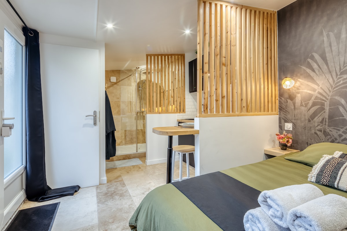 Studio rénové de 30m², idéalement situé à deux pas du Jardin des Plantes de Rouen, dans une résidence calme avec ascenseur. Parfait pour les séjours professionnels ou touristiques, il offre une cuisine équipée (four, plaque, micro-ondes, Nespresso), un salon cosy avec TV 55” (Netflix, YouTube), un coin nuit avec lit double et dressing, ainsi qu’une salle de bain moderne avec douche à l’italienne. Un balcon avec vue sur une cour arborée complète ce lieu paisible.