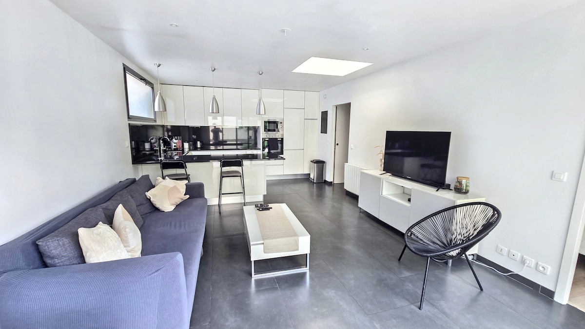 Welcome to our cozy apartment, fully renovated by an architect in 2019. It’s our main residence and we’ll be happy to host you! It features a spacious main room (living room / kitchen / office) opening onto a private 20m² courtyard, a comfortable bathroom, separate toilet, and a cozy bedroom with brand new, high-quality bedding. Fully equipped with a whirlpool bathtub and high-end projector, everything is ready for you to enjoy a great stay!