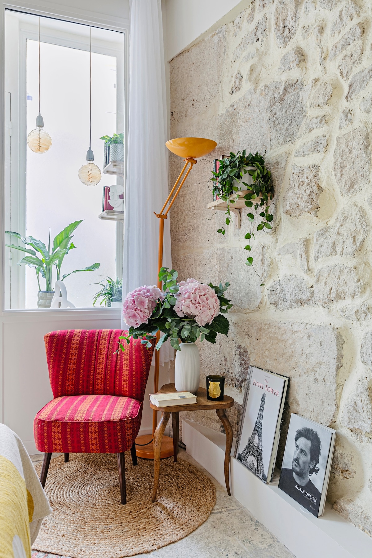 Authentic Paris at its most bohemian chic! This bijoux duplex apartment on the Left Bank in the heart of St. Germain is situated in a historic 17th century building just opposite the Musee Mailol and Fontaine des Quatre Saisons. The flat has been recently and totally renovated. The rustic stone walls and antique ceiling beams have been exposed and carefully restored on both levels. Modern design elements and understated hip luxury integrate with the buildings original features to make this flat the perfect city escape for the discerning traveler. The spacious and quiet bedroom on the 2nd floor features a French-made luxuriously comfortable king size bed (180cm) complete with the finest feather and hypoallergenic (upon request) bedding, built in closet, oak chest of drawers and a full length floor mirror. The ultra contemporary ensuite bathroom is decorated in calming hues of gray and beige, has a rain shower, toilet, sink and a towel heater. On the first level a fully equipped kitchen/ living and dining area have been tastefully outfitted with a mixture of modern classics and unusual finds, offering the utmost in comfort in a cool and casual setting designed to make your stay in the City of Lights a very special one. Private access via the main entrance, this duplex is an independent apartment. We are always available for anything that you might need during your stay, and happy to assist in making your time in paris perfect! This chic one bedroom duplex is ideally located in the heart of the sought-after Rive Gauche/St. Germain neighborhood. The lively and cultivated Left Bank district boasts some of city’s finest shopping, dining and culture. Here is where you’ll find hip one-of-a-kind boutiques to high-end designer fashion, antique galleries (Carre des Antiquaires), as well as many modern-classic design shops. An array of delightful culinary offerings and dining experiences at every turn make this arrondissement quintessential Paris at its very best! The recently opened Beau Passage, adds yet another gourmet haven to the neighborhood. We are situated within a short walking distance to many of the main attractions of central Paris including: The Louvre, Musee D’Orsay, Musee Maillol, Seine River, Invalides, all of St. Germain and the Latin Quarter, Notre Dame Cathedral, Le Bon Marche department store, Cafe Flore, Cafe Deux Magots and more. There are 3 Metro stations serving this area: Rue du Bac on Line 12, Sevres Babylone on Line 10 and 12 and St. Germain des Pres on Line 4. 1. Please note that due to the historic nature of the building and certain restrictions on construction, the flat is not air-conditioned. A fan is provided, however, due to the the old thick stone walls the apartment stays rather cool even on the warmest of summer days. 2. The apartment has an interior stairway from the living/dining room to the bedroom/bathroom and therefore may not be suitable for those with limited mobility. 3. This apartment can only comfortably accommodate 3 people. Children above the age of 12 years old are welcome. 4. While the kitchen is very well equipped, there is no dishwashing machine.