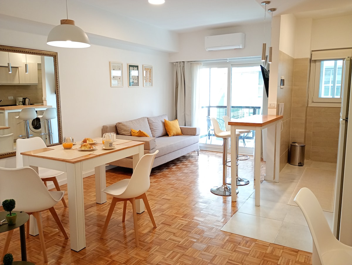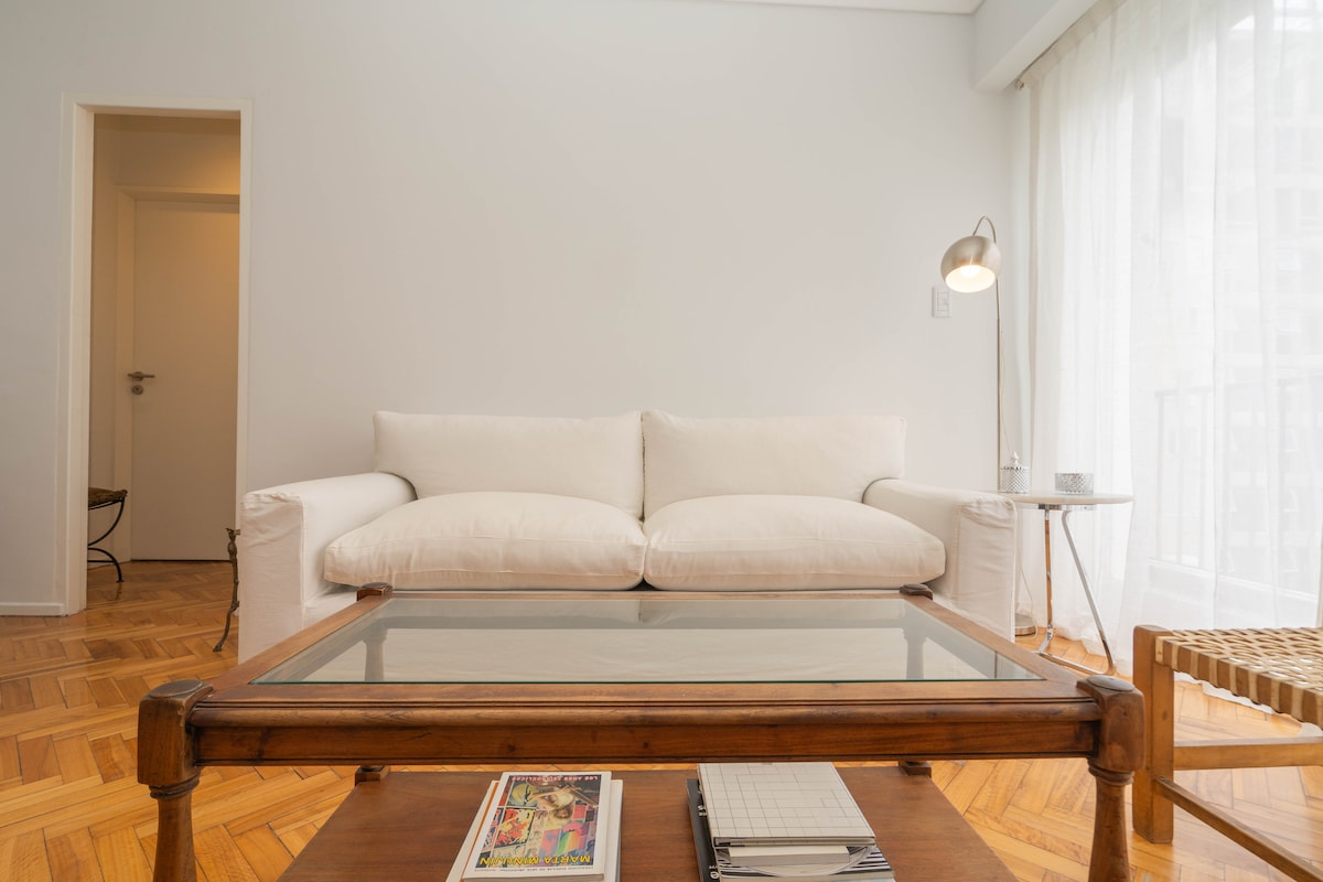 * Safe and peaceful area surrounded by shops of all kinds and quality restaurants nearby. * Bedroom with 55" SmartTV. Living room with available working area - table and chairs . * Fully equipped kitchen -Nespresso, Washer, Toaster, Fridge, Microwave. * Access to free street parking. * Close proximity to Embassies - Spain, Morocco, Saudi Arabia, Poland. * Easy access to Shopping Alcorta, Bosques de Palermo, Sanatorio Mater Dei, Museo MALBA.