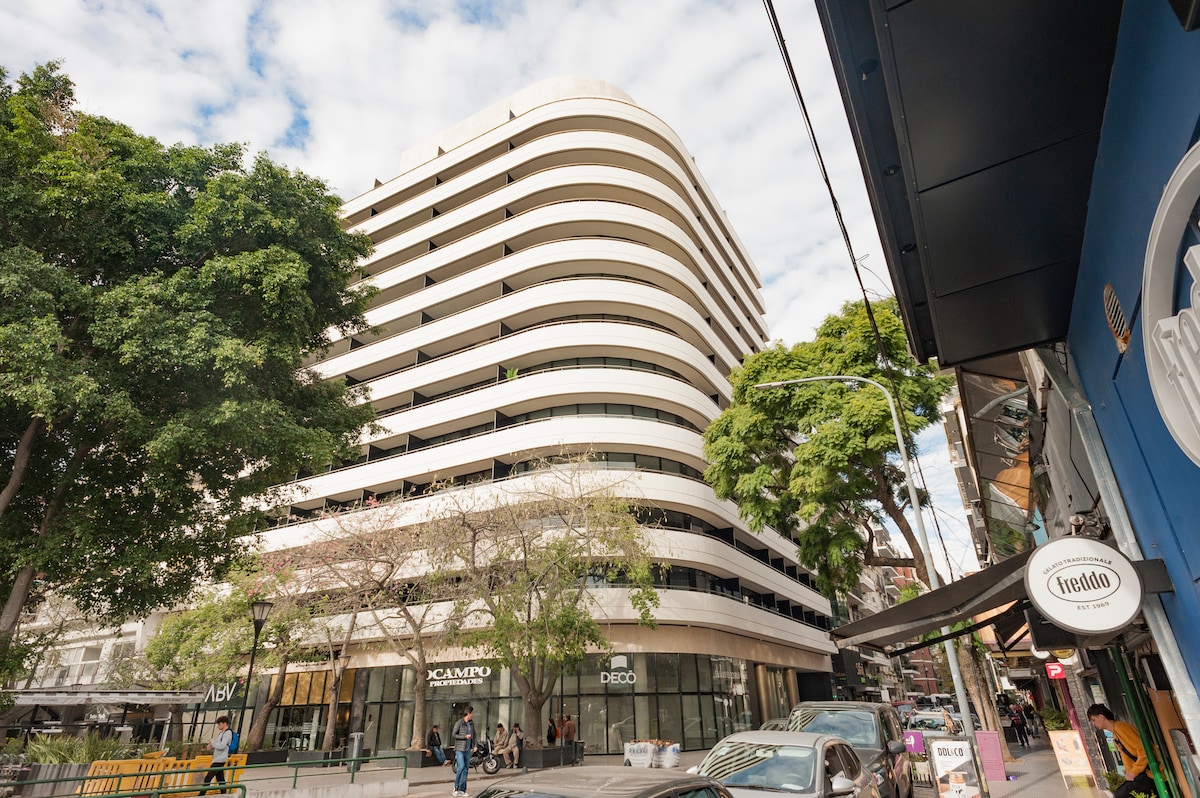* Safe and peaceful area surrounded by shops of all kinds and quality restaurants nearby. * Bedroom with 55" SmartTV. Living room with available working area - table and chairs . * Fully equipped kitchen -Nespresso, Washer, Toaster, Fridge, Microwave. * Access to free street parking. * Close proximity to Embassies - Spain, Morocco, Saudi Arabia, Poland. * Easy access to Shopping Alcorta, Bosques de Palermo, Sanatorio Mater Dei, Museo MALBA.
