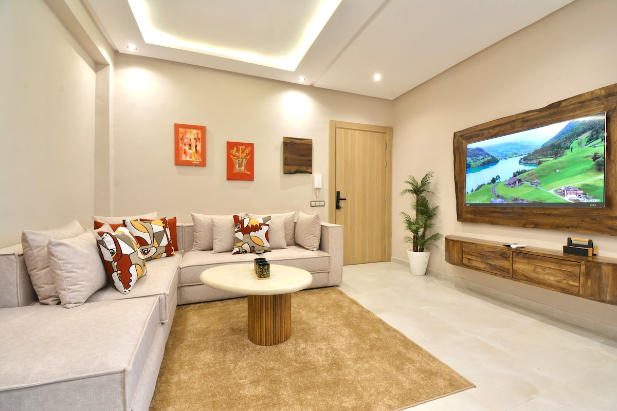 Séjournez en plein cœur de Marrakech dans notre appartement 2 chambres et 2 salles de bain. Profitez d'une literie Simmons haut de gamme, WiFi haut débit (fibre optique) et d'une décoration moderne avec une touche ethnique. Cuisine entièrement équipée, baignoire élégante, et douche italienne. À quelques pas de la place Jemaa el-Fna, du Plazza, et du Carré Eden. NB : Les couples marocains non mariés ne sont pas autorisés.