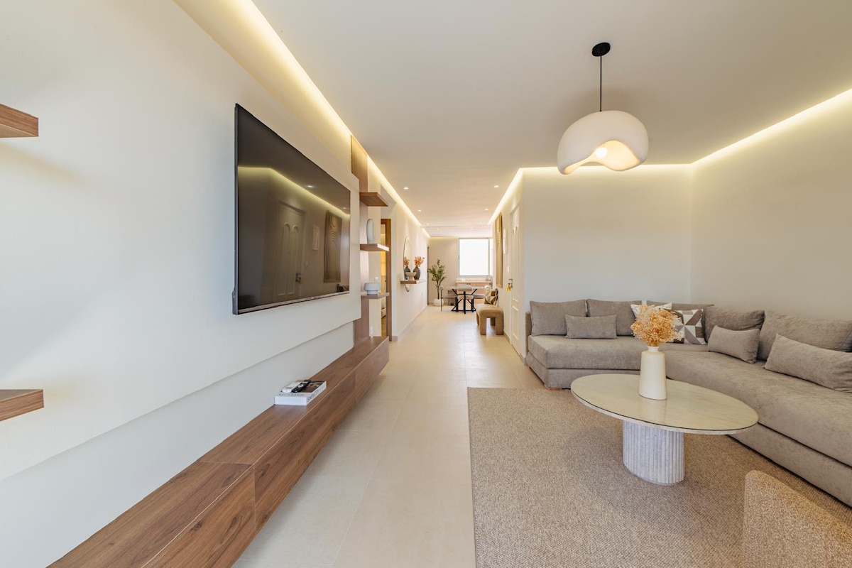 Séjournez en plein cœur de Marrakech dans notre appartement 2 chambres et 2 salles de bain. Profitez d'une literie Simmons haut de gamme, WiFi haut débit (fibre optique) et d'une décoration moderne avec une touche ethnique. Cuisine entièrement équipée, baignoire élégante, et douche italienne. À quelques pas de la place Jemaa el-Fna, du Plazza, et du Carré Eden. NB : Les couples marocains non mariés ne sont pas autorisés.
