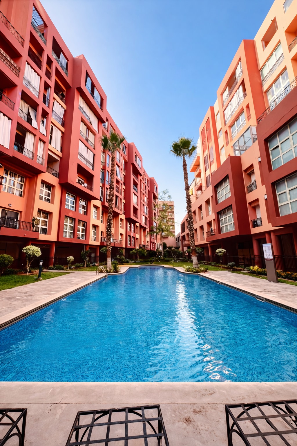 Séjournez en plein cœur de Marrakech dans notre appartement 2 chambres et 2 salles de bain. Profitez d'Une literie Simmons haut de gamme, WiFi haut débit (fibre optique) et d'une décoration moderne avec un bassin privé. Cuisine entièrement équipée, baignoire élégante, et douche italienne. À quelques pas de la place Jemaa el-Fna, du Plazza, et du Carré Eden. La piscine n’est pas chauffée. NB: Les couples marocains non mariés ne sont pas autorisés.
