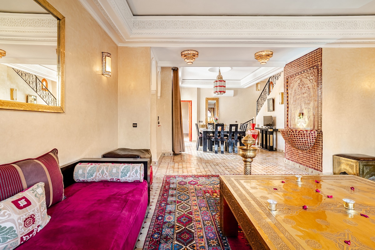 🌿 Riad privé, lumineux et spacieux au cœur de la médina. 5 chambres avec sdb privées, piscine au patio, grande terrasse et terrain de pétanque. Inclus : Gouvernante quotidienne Gardien de nuit Majordome 24/7 pour excursions, transferts, arrivées/départs Wifi rapide, climatisation, cuisine équipée, salons confortables. À 10 min de Jemaa el-Fna. Idéal familles, amis ou retraites.