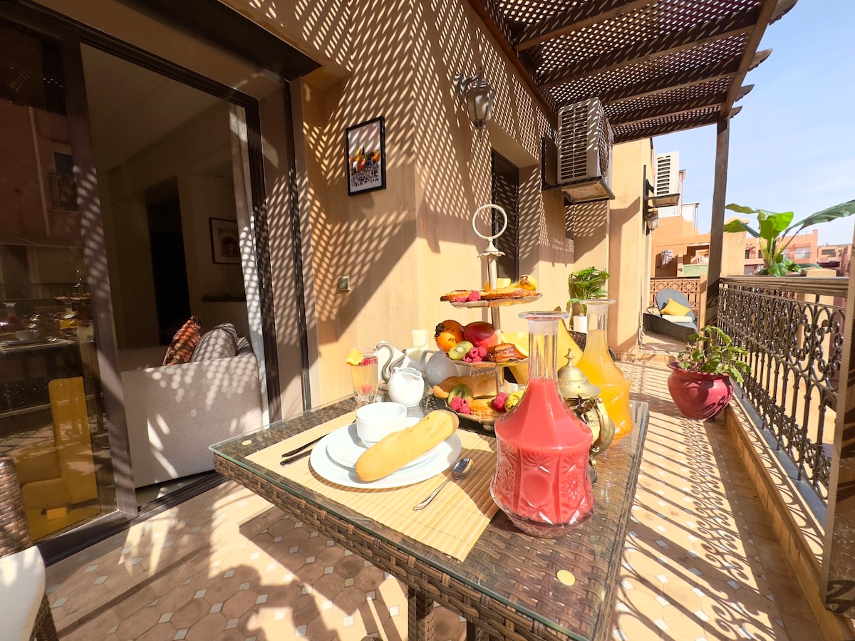 Meilleur Emplacement de la Ville avec PISCINE🕶️. Endroit stratégique de Guéliz, à proximité de tous les commerces et endroits importants de Marrakech: - 4 minutes de JAMAA EL FNA -3 minutes de Mc do guéliz. -5 min de la Medina de Marrakech Appartement extrêmement lumineux, avec énorme terrasse de 40 metres carrés, pour bronzer et petit dejeuner au soleil 🌞. Des dizaines d’adresses sympathiques avec les meilleurs petits déjeuners de Marrakech, juste en bas de l’immeuble. ☕️