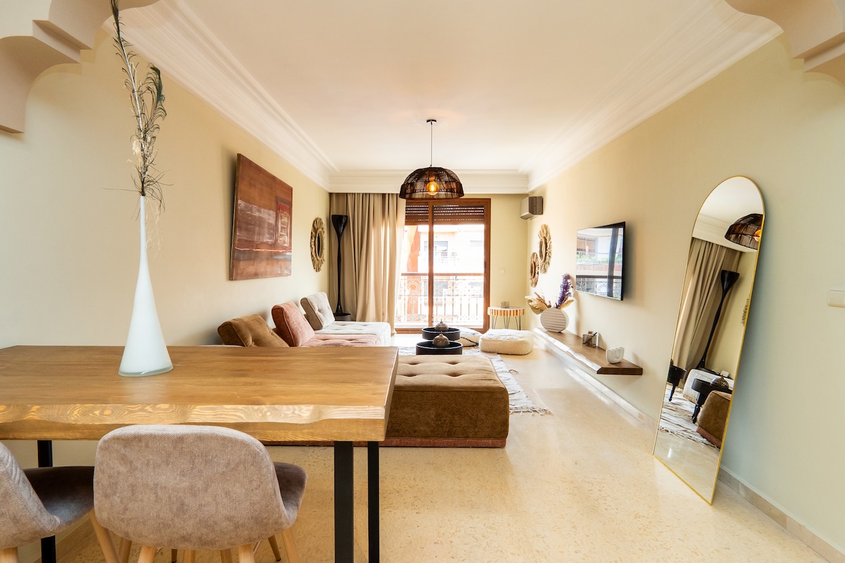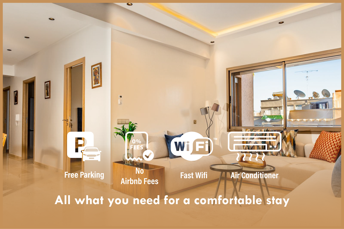 Joli cosy appartement ensoleillé situé dans l’historique rue Yves st Laurent, juste en face du musée. Constitué de deux chambres, deux salles de bain dont chacune dispose d’un balcon privé ainsi que d’un salon doté d’une cuisine américaine. L’appartement peux accueillir jusqu’à cinq voyageurs. Situé dans une résidence sécurisée au centre ville proche de toutes les commodités en profitant du calme du jardin Majorelle. Interdit aux couples musulmans non mariés