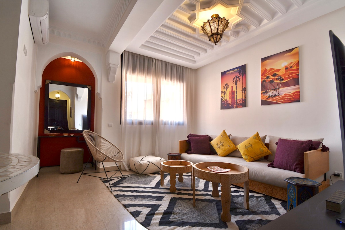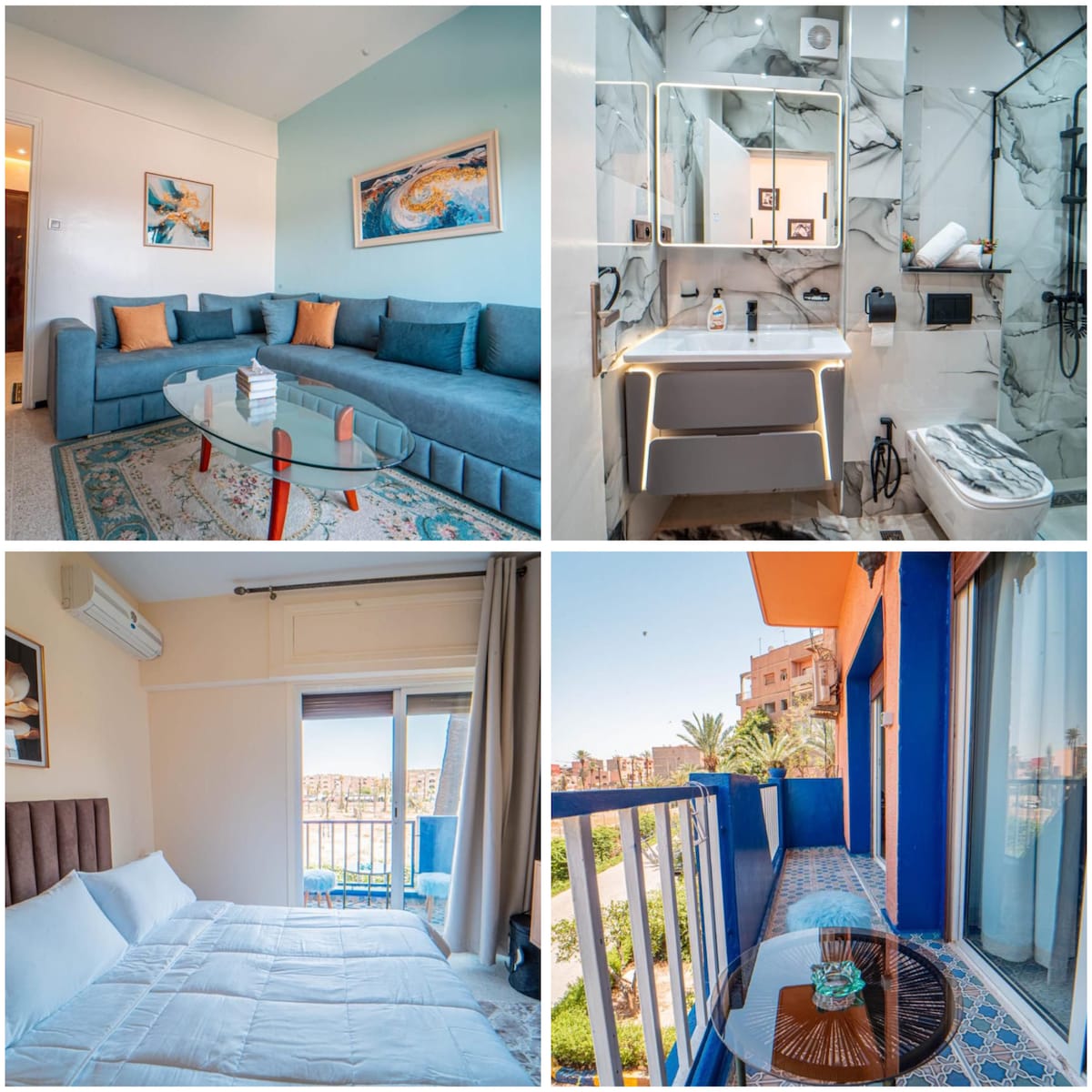 Welcome to our thoughtfully designed one-bedroom apartment with pool, where positive energy flows through every inch. in the center of Gueliz 10 min walk from carré Eden and the 5 minutes from the train station. Perfectly situated, you'll be surrounded by an array of restaurants, cafes, and shops. Well Equipped, we've taken care of every detail, high-speed internet, IP TV, Netflix, ensuring a seamless experience and make your stay stress-free