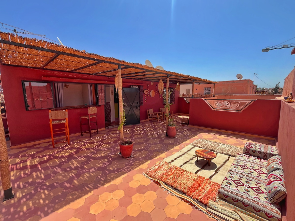 Notre Riad est une promesse d'évasion. Imaginez vos matinées bercées par le chant des oiseaux dans le patio et vos soirées sur notre terrasse surplombant la ville rouge.Un mélange raffiné de zelliges traditionnels et de confort contemporain. Un salon de lecture cosy pour s'évader,des chambres élégantes pour se ressourcer. Un patio rafraîchissant, pour le café du matin, un rooftop pour savourer le coucher du soleil.Hospitalité marocaine et confort absolu:votre parenthèse enchantée commence ici.