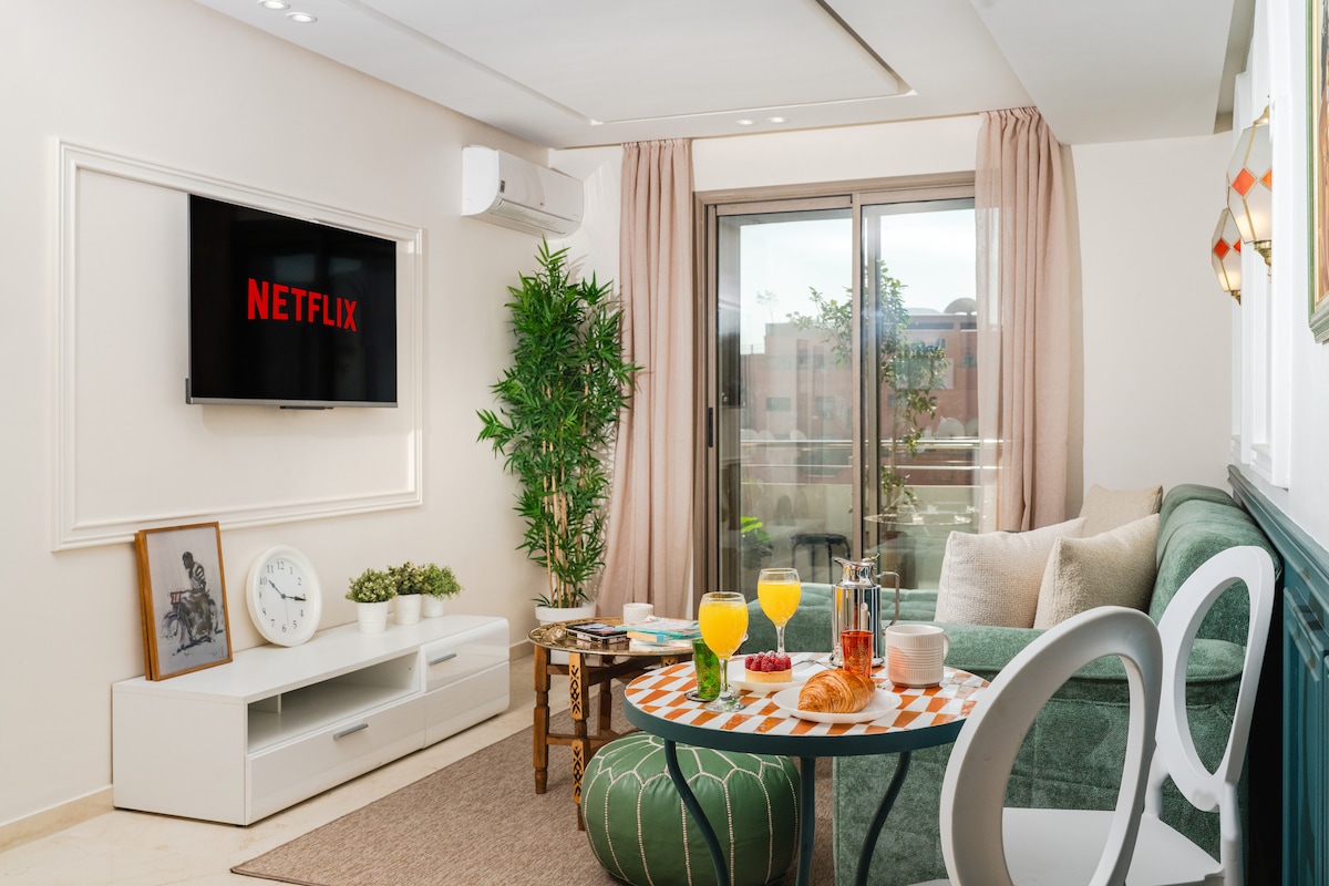 Bienvenue à Marrakech, bienvenue chez vous dans ce lieu idéalement situé entre Guéliz et l’Hivernage, à deux pas de tout: restaurants, cafés, boutiques…Laissez-vous porter par le rythme de la ville ocre! L’appartement est un petit refuge lumineux, pratique, chaleureux et confortable, parfait pour se détendre après une journée bien remplie. Profitez du soleil et de l’ambiance urbaine vue du balcon. Un lieu authentique pour un séjour paisible au cœur de l’agitation. SmartTV, Netflix, fibre optique