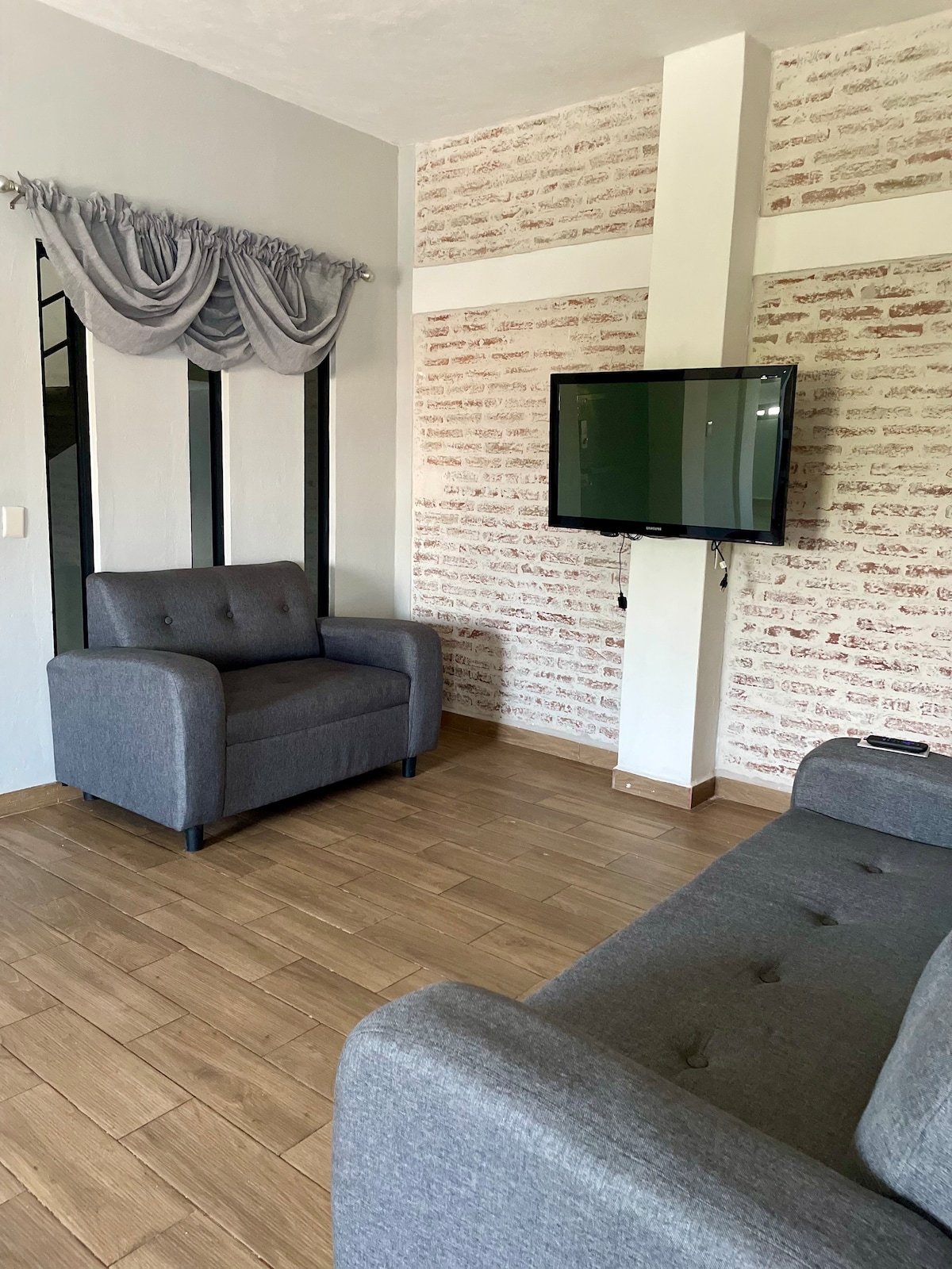 Nos encantará recibirte en este espacio con gran iluminación, decoración y limpieza. Es un espacio donde pueden convivir 4 huéspedes cómodamente. Contamos con 2 lugares de estacionamiento en la parte exterior o 2 en la parte interior coordinando con el casero, contamos con una cama matrimonial en la habitación y un sofá cama matrimonial en la sala.