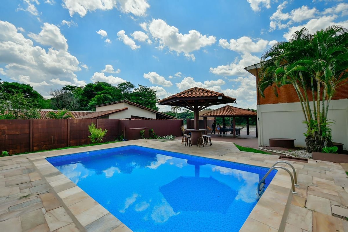 Área de lazer disponível para locação durante o período da Agrishow, Rodeio e final de ano, com fácil acesso pela estrada e estrutura completa. Piscina aquecida, bar interno, churrasqueira, forno e fogão a lenha, mesa de bilhar tamanho oficial e mesa de pingue-pongue, geladeira, fogão elétrico e freezer 400 litros. Limpeza antes e após a saída de cada hóspede. Produtos de higiene básica totalmente ofertados por nós.