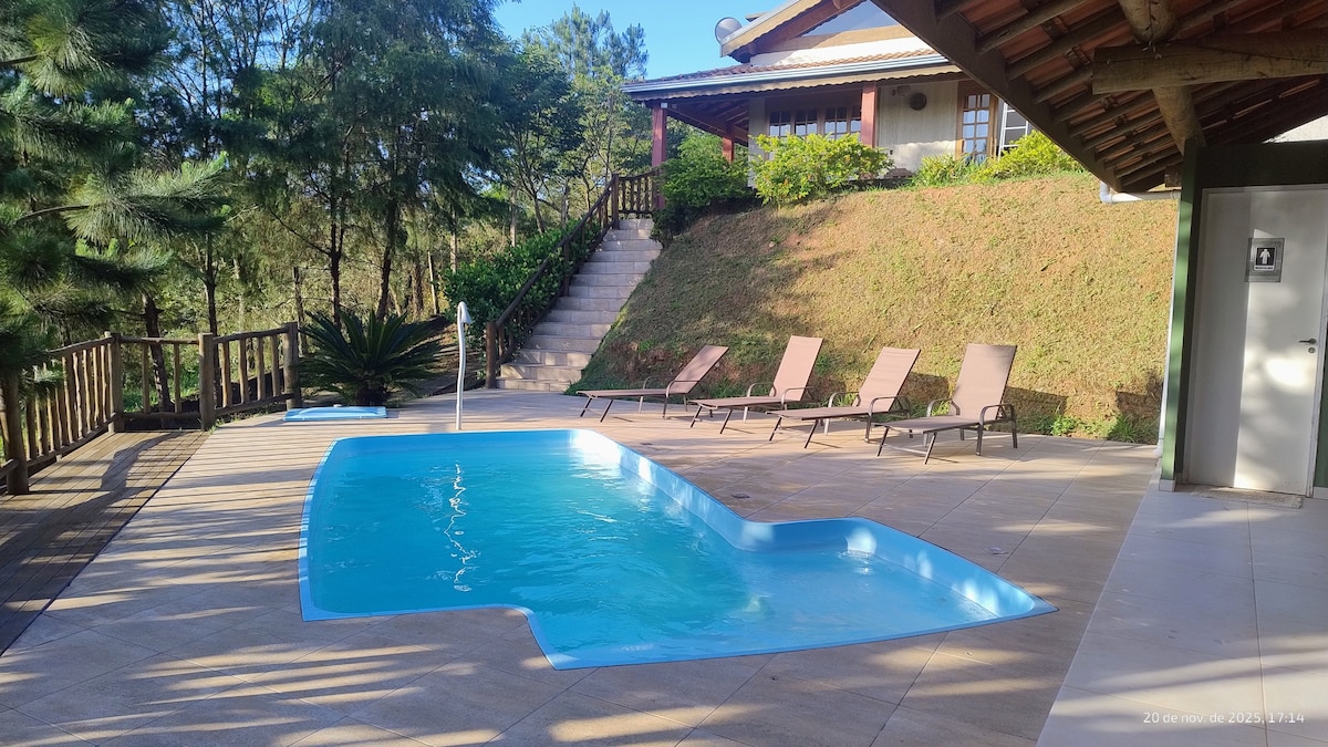 Em meio à natureza, nosso sítio é um convite para desacelerar. Aqui, o silêncio, o verde e o ar puro te abraçam. A casa rústica e elegante traz aconchego, o spa com hidromassagem climatizada e a piscina completam momentos de descanso 3 Suítes acesso direto ao jardim Incluso roupas cama banho Sala de Estar integrada Sala de Jantar Lareira Smart TV 55" Spa Hidro e Água Climatizada Piscina Cozinha completa Churrasqueira na varanda Fogão a Lenha Pet muito bem-vindo Para até 8 pessoas Garagem