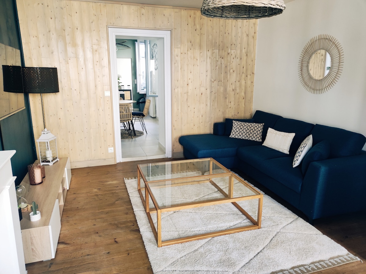 Bienvenue à Cognac ! Je vous accueille chez moi, dans un spacieux loft refait à neuf. Constitué d’une suite parentale de 25m² avec pièce d'eau, d'une seconde chambre, d’un large salon/cuisine. Situé en plein cœur du centre ville, à 5min à pied de la place François 1re et des quais. Parking gratuit partout dans le quartier, très calme situé dans une impasse. Le logement idéal pour découvrir la ville pendant quelques jours !
