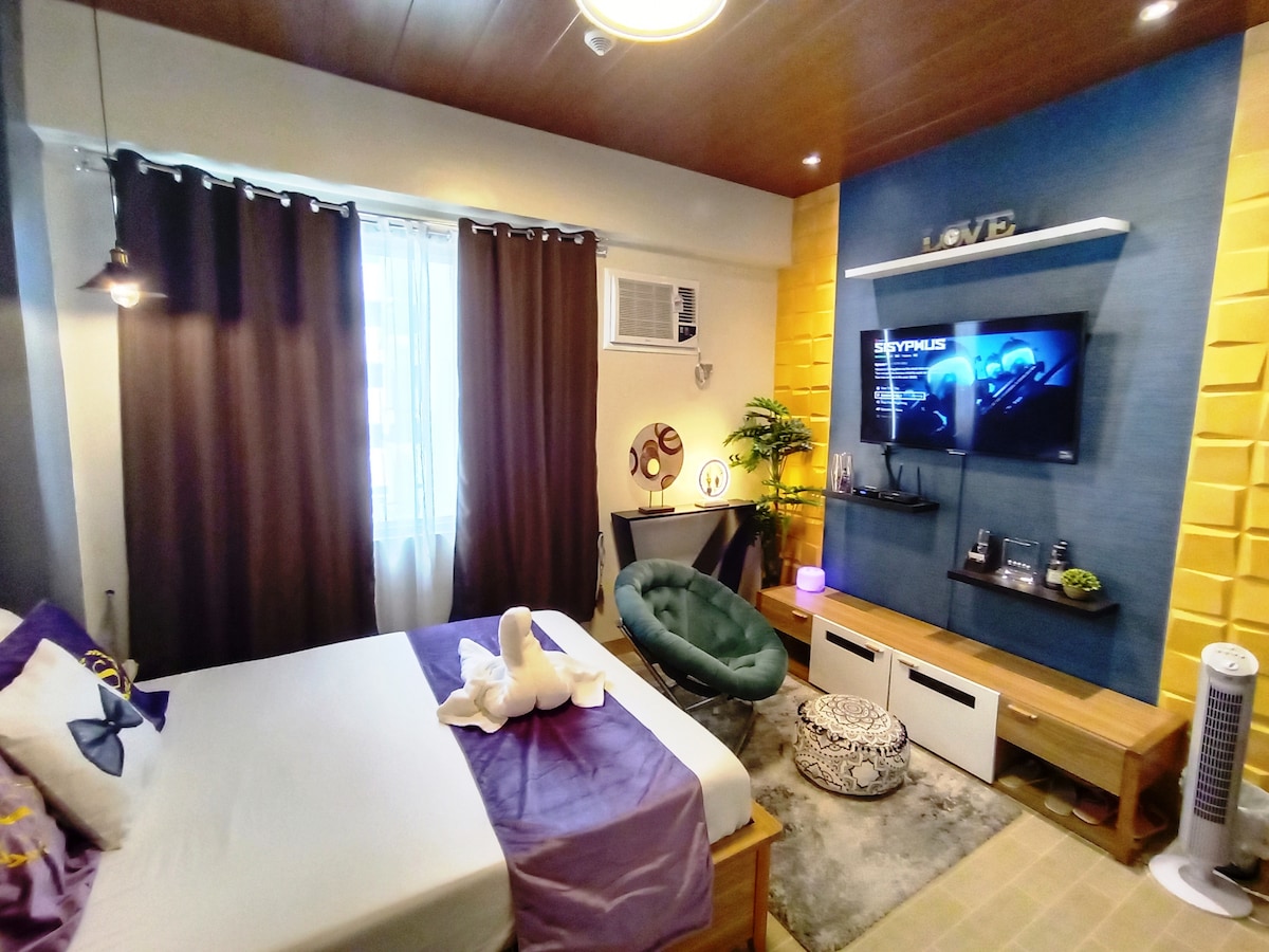 📢 PLEASE READ BEFORE BOOKING "Home Away from Home" – Studio Unit This cozy studio features 1 full/double size bed 🛏️, perfect for 2 people, plus an additional full/double size floor mattress (about 1 inch thick) 🛋️ that can comfortably accommodate 2 more guests. The extra mattress will only be set up if your party exceeds 2 guests. It’s your perfect urban sanctuary 🏙️, right in the heart of the vibrant Megaworld Complex! 🌟