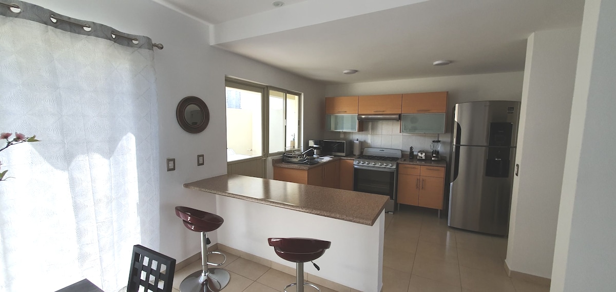 At Casa Meraki we have created a modern and comfortable space, ideal for families or couples to spend an unforgettable vacation in the beautiful Banderas Bay. The house is located in a suburb area near Nuevo Vallarta, just 10 minutes away by car to the beach, malls and restaurants. A couple of blocks away you’ll also find convenience stores and access to public transportation. We have put a lot of love and attention to the customer, we have air conditioning throughout the house.