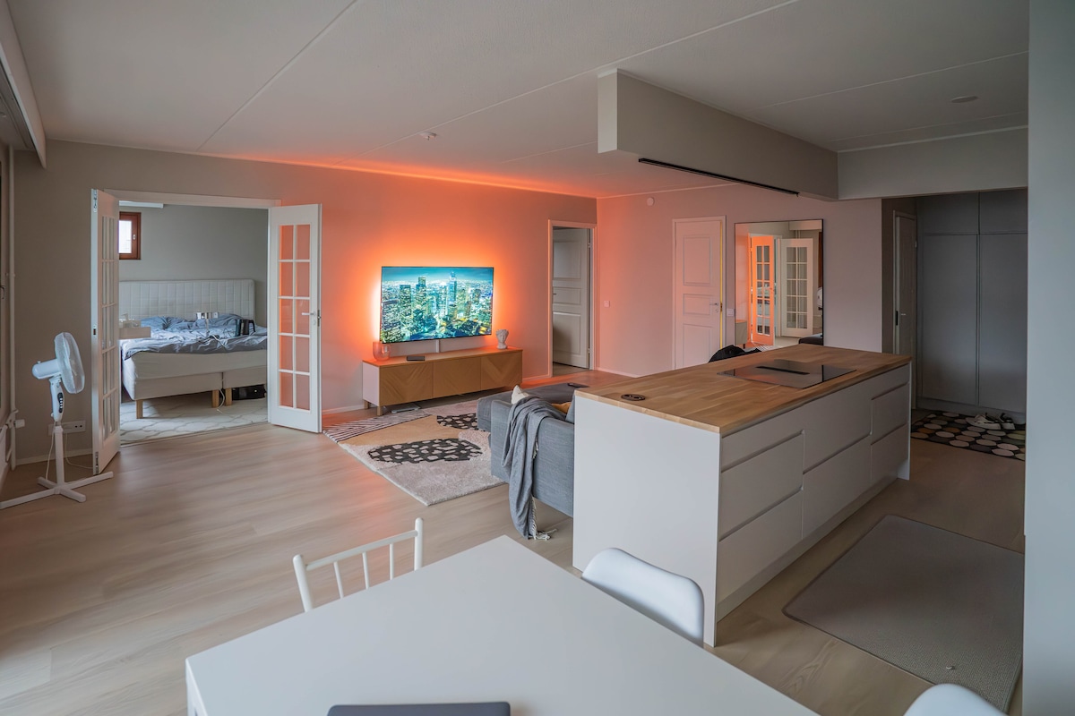 Take it easy at this unique getaway and enjoy your stay in this fairly new 34 m2 condo & studio (+13 m2 balcony). Calm neighborhood with excellent transportation connections makes accommodation comfortable and makes you feel like home. The bus stops are located right near near the apartment and the metro station is only a 5-minute walk away (450 meters from the apartment) which takes you to the city center within 12 minutes.