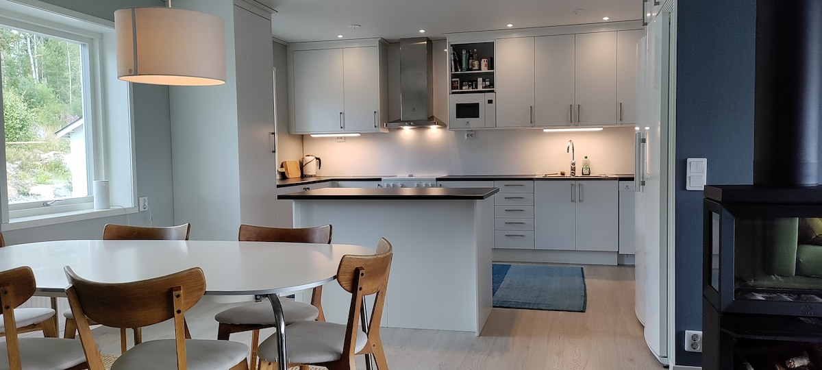 Quality living in a quiet place with lot's of opportunities in the winter like slalom, cross-countryskiing, skating or take a sauna bath. In the summer you can use the rowing boat for fishing, take a swim from the private pontoon in to the lake or relaxing on the veranda or the greenhouse. Perfect place for family and friends. A big modern kitchen and a living room with a lot's of space. The house is close to Järvsö, the Bike Park and Järvzoo.