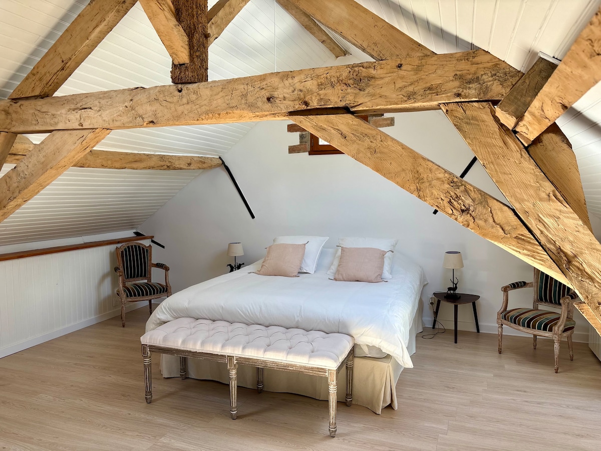 You will be charmed by the architecture, the decoration of this 250 m2 loft and its hectare of walled park Large stove vast interior spaces, with a fully equipped kitchen, and another outside, a large courtyard and a BBQ 2 large Canadian canoes, 10 bicycles, 1 small tennis court, pétanque court, 1 table tennis table (rackets and balls provided) 1 unheated pool due to world events, deckchairs and hammocks 2h30 from Paris, 3 min from the A11, up to 15 people