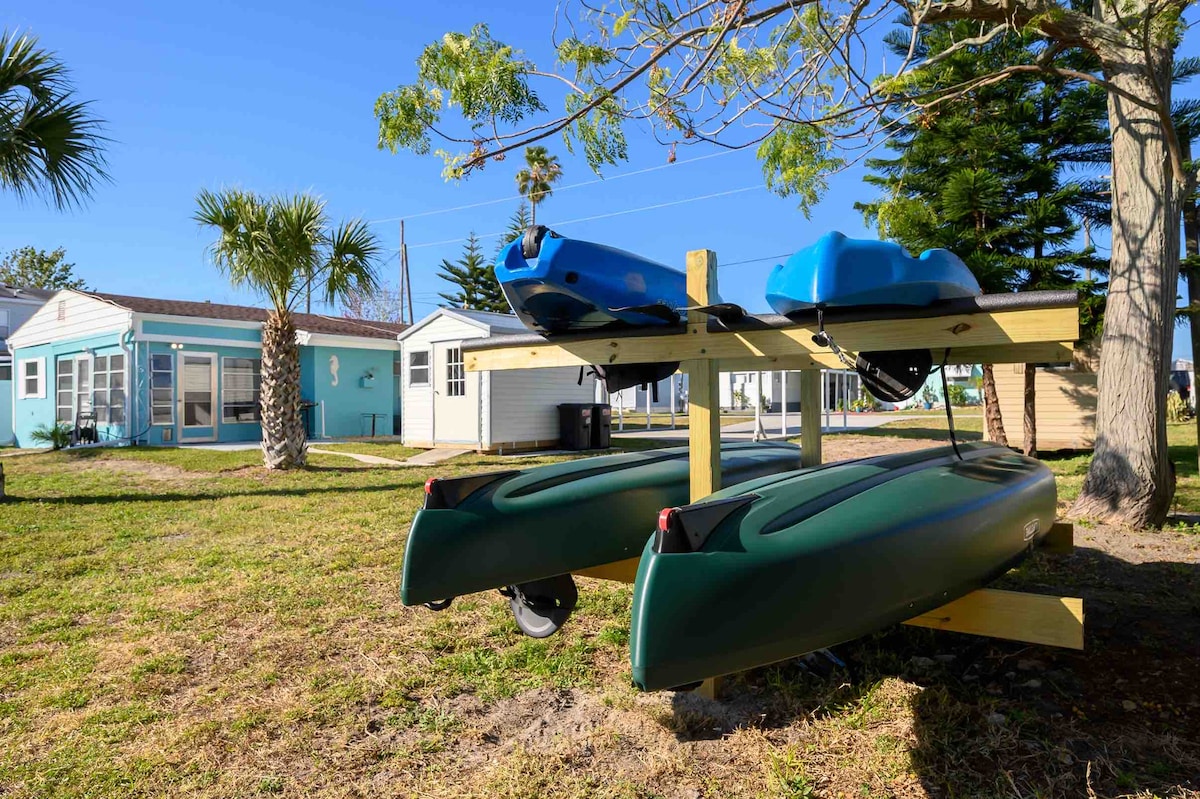 This unique Surf Shack is a guest home that sleeps up 4 & still plenty of room to relax inside or outside on the large wood deck situated under a beautiful oak tree. Located in the historic district Tarpon, just blocks from Downtown, the famous Sponge Docks & Craig Park where you can watch dolphins feed at sunset in the many Bayous. Close to beaches, shopping, restaurants, breweries, boat excursions, water sports & the Pinellas Trails you will never get bored in this town!
