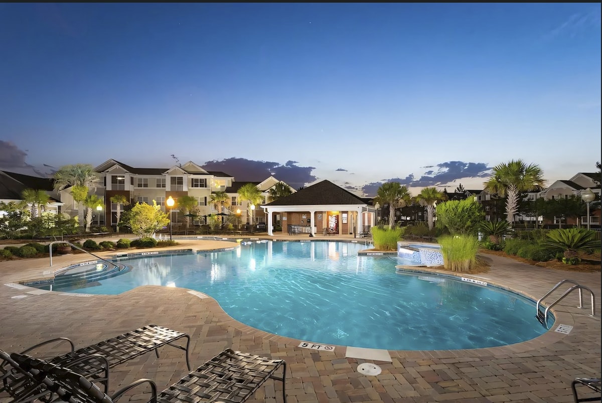 Kick back and relax in this calm, stylish space located in this Southern Living inspired neighborhood. Eat dinner listen to music and shop all within walking distance of your place. Play pickle ball, fishing, basketball, or join the gym to stay fit. We love the beauty of the moss covered live oak trees, being able to sit on a swing and watch the sunset over the marsh, and going to the pool.